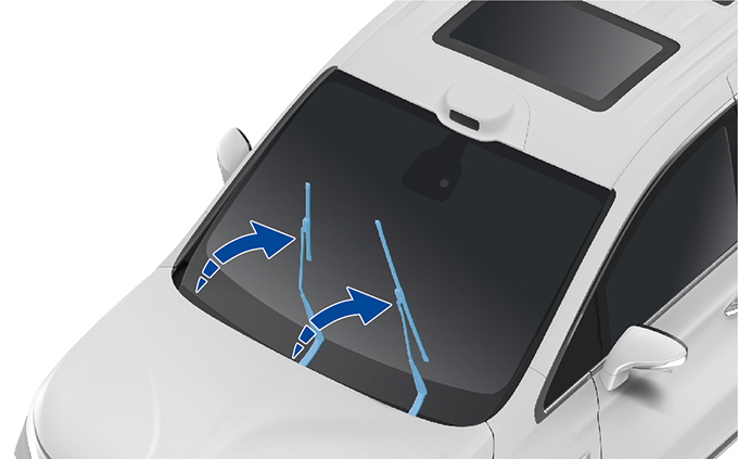 - 清洁完毕后,将雨刮臂轻轻地放回前风窗玻璃;