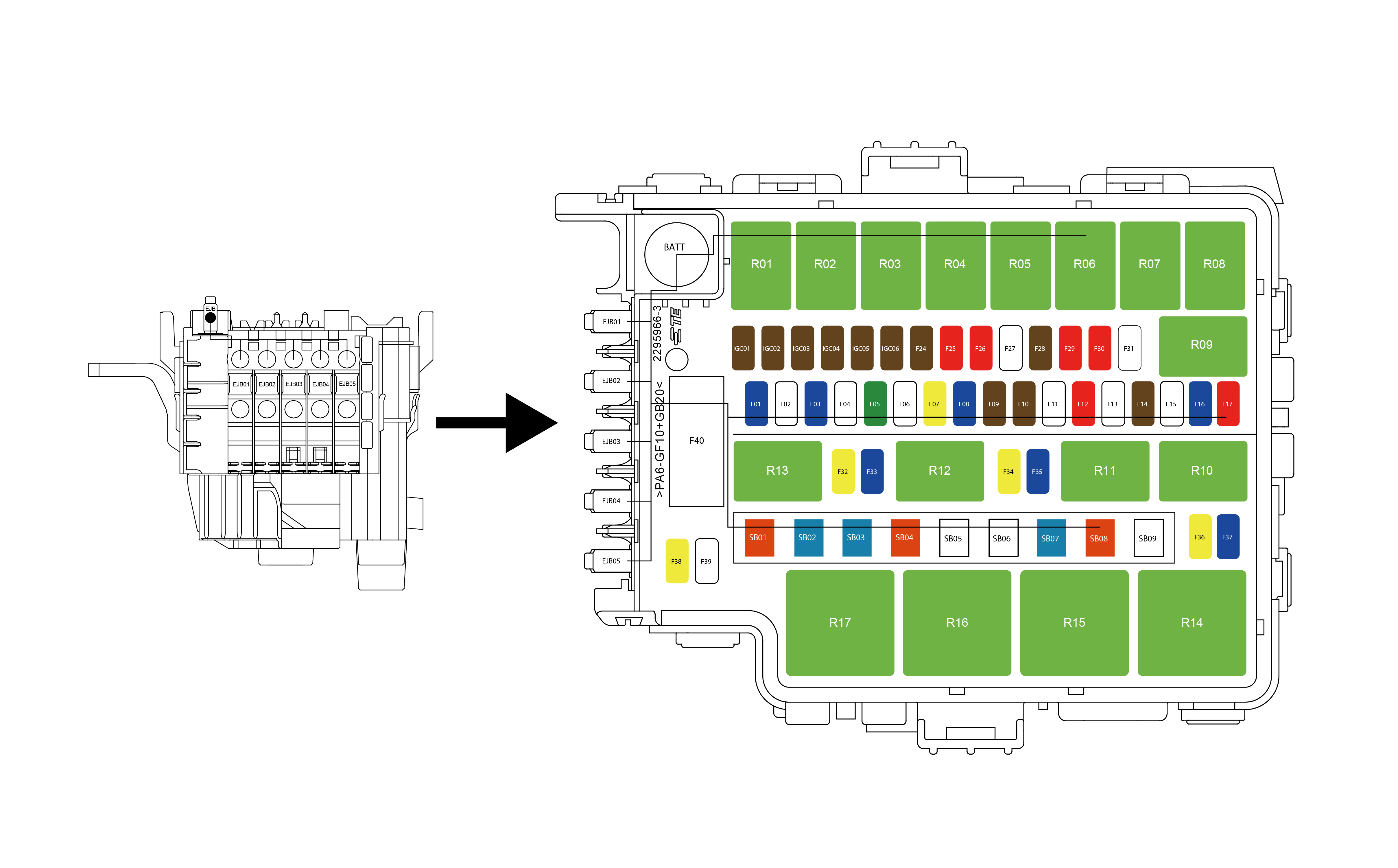 | SB01 | 40A | 前鼓风机保险丝 | JCASE |