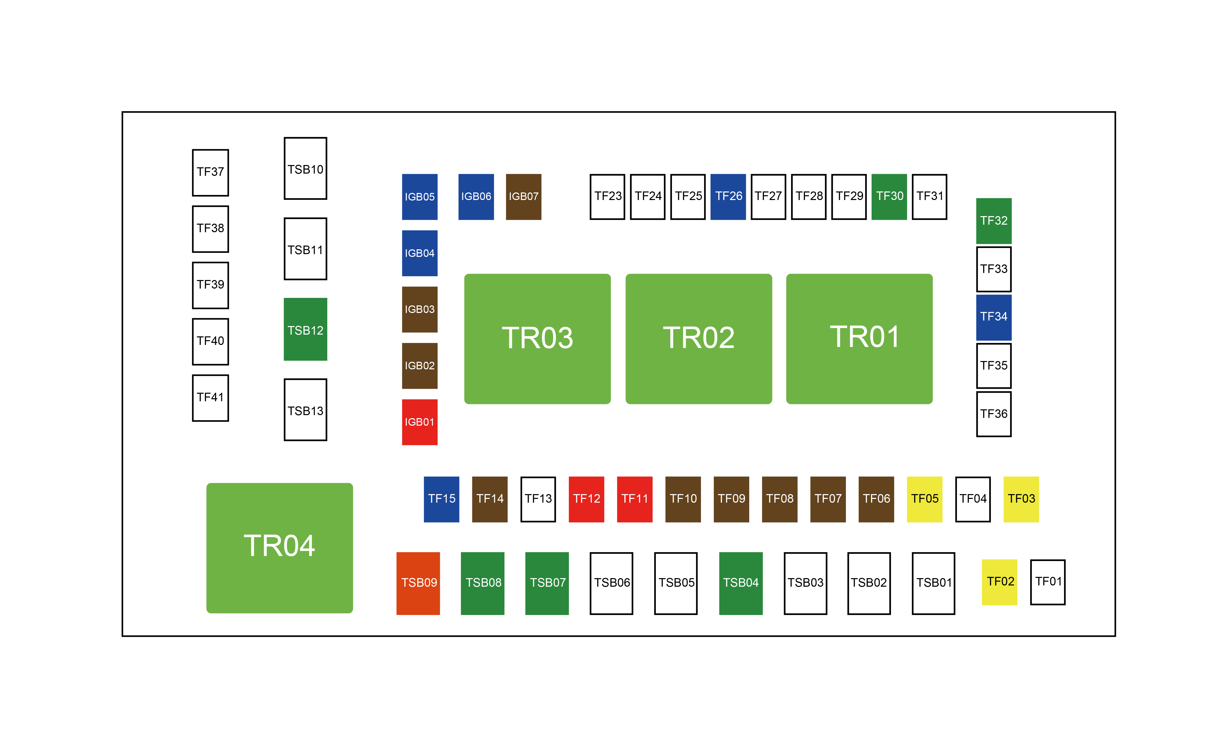 | TR03 | 40A | IG2 继电器 | TR04 | 40A | *悬架气泵继电器 |