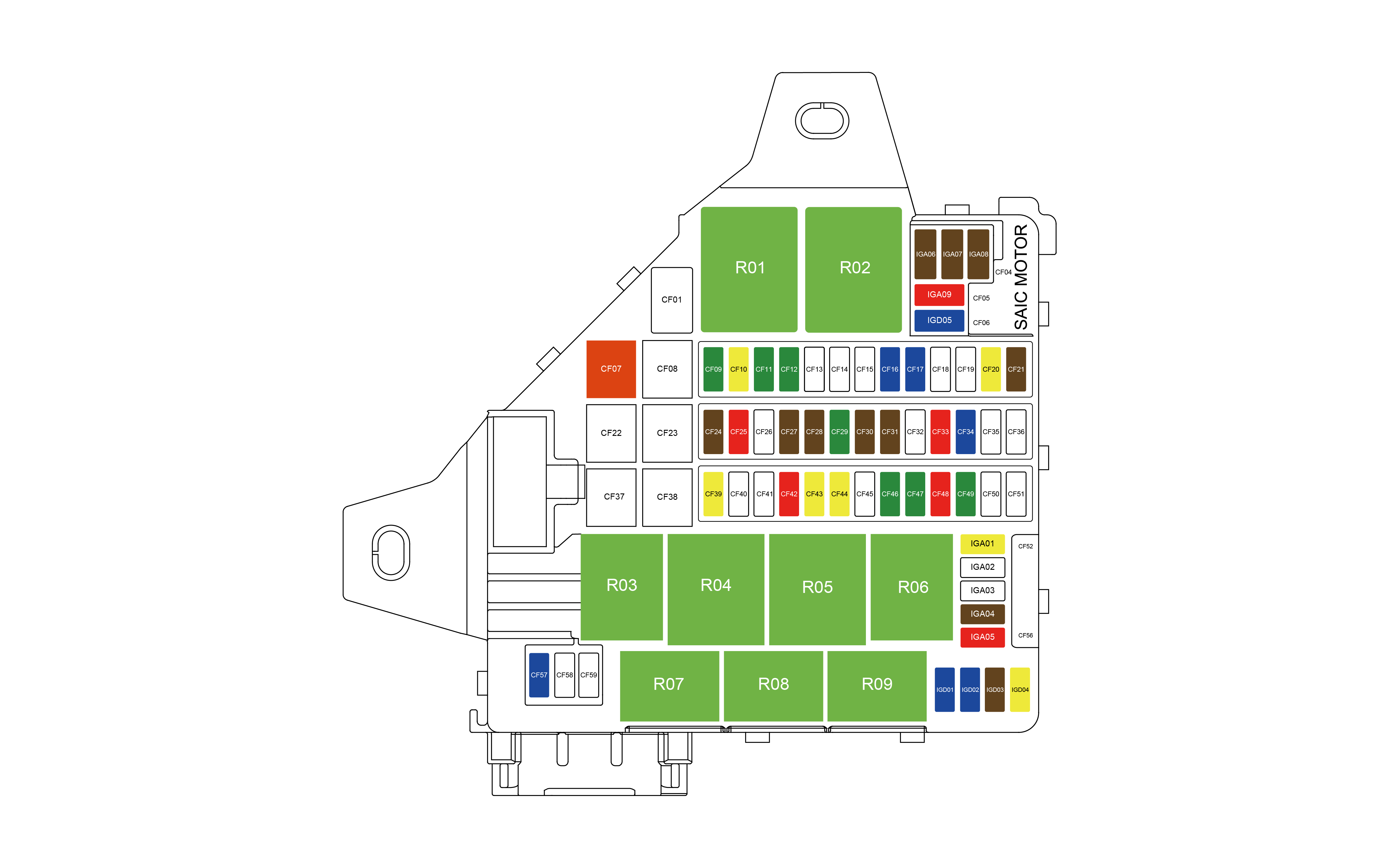 | IGC01 | 7.5A | 发动机EC U/ 整车控制器保险丝 | MINI |