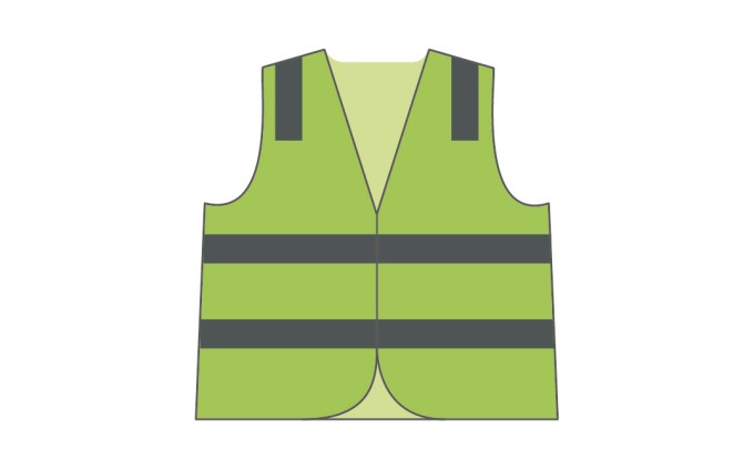 - 穿戴反光背心时,请将带有反光材料的一面穿戴在外面。