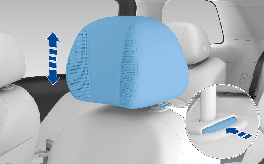 按下二排座椅头枕按键,可调节头枕上、下 位置。