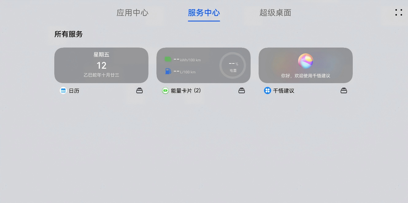 “服务卡片”是一种内容动态刷新的卡片,您无需打开应用,即可通过卡片获取应用内的重要信息,如千悟建议、车辆能量等,进入卡片可查看更多详情。