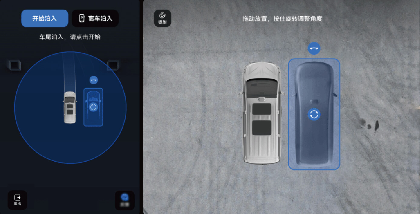 - 点触屏幕目标位置或拖拽车位框以调整位置,拖动车位框顶部的旋转图标以调整角度。