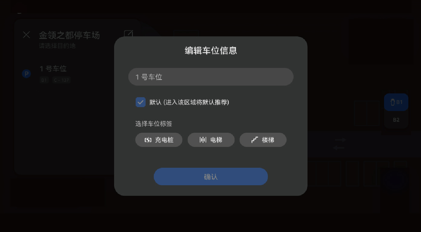 - (可选)点触“知道了”后,可编辑车位标识信息(如有充电桩、在电梯旁等位置参考信息) 。