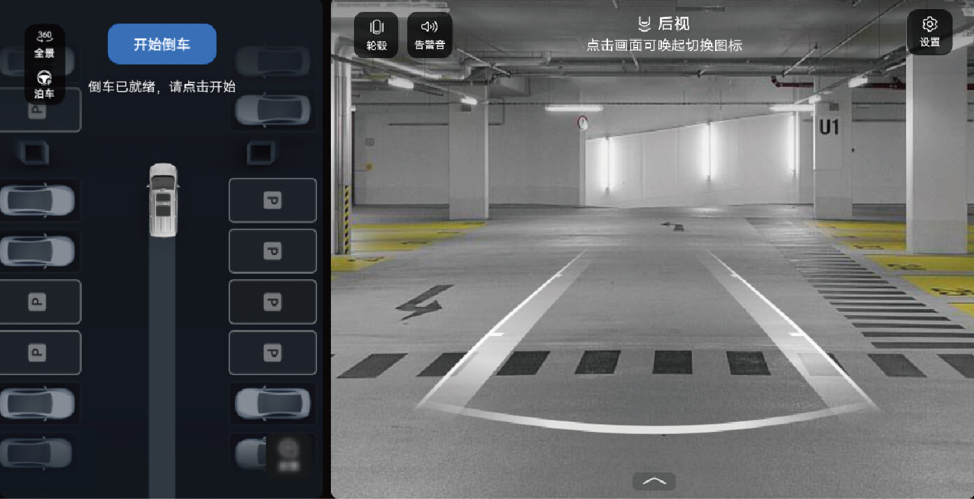 - 挂 R 挡(请确认中控屏的“设置 > 辅助驾驶 > 全景环视”已设置了挂 R 挡默认打开“智能泊车辅助”)。