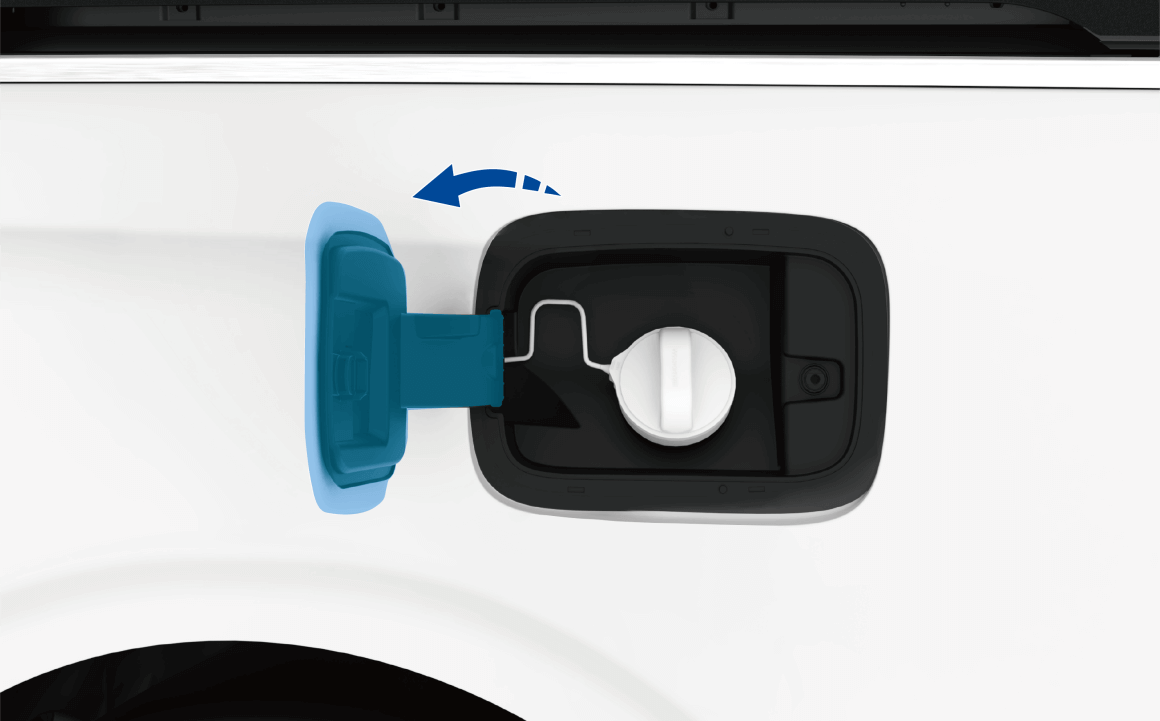 - 将油箱口盖对正插入燃油加注口,顺时针拧紧油箱口盖(听到 “哒哒” 声响,表示油箱口盖已拧紧);
