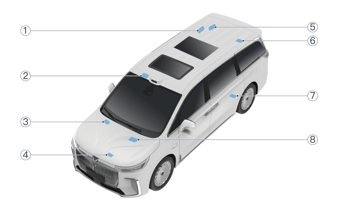 | ⑧ 前机舱高压警告标签 | 位于前机舱内 |