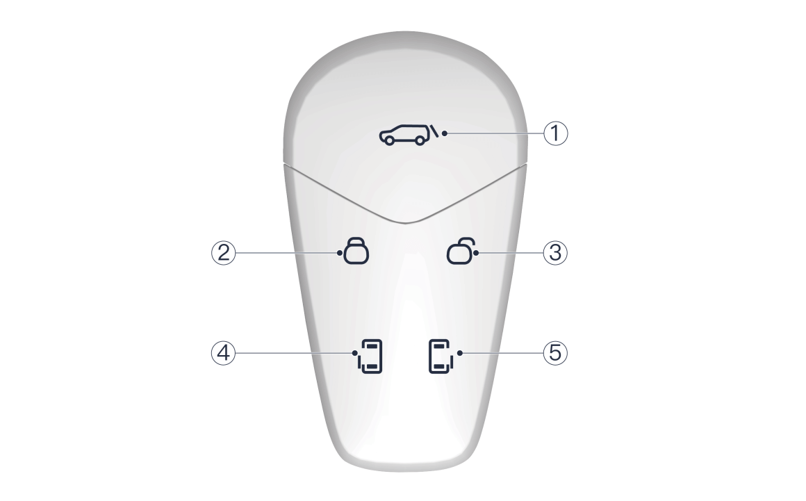- 车辆处于解锁状态,连续两次短按智能钥匙左滑移门按键,可控制对应侧滑移门电动开启、关闭或暂停运行。