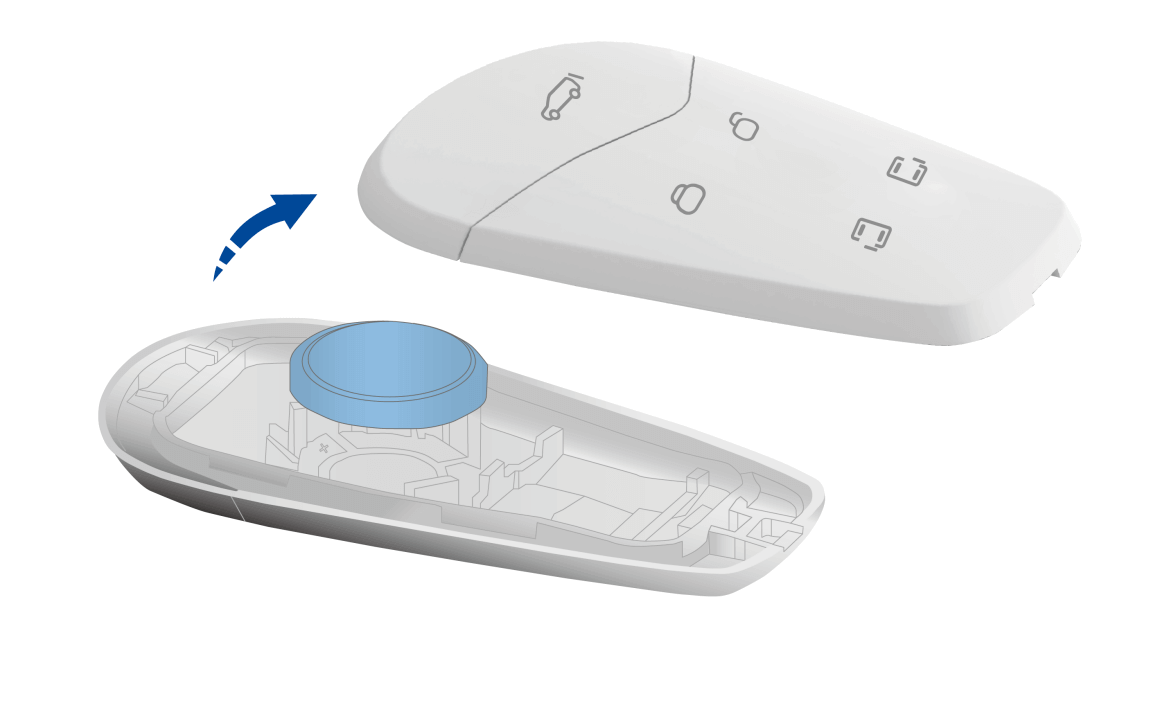 - 请务必使用同型号的新电池进行更换,使用不同型号的电池可能会损坏智能钥匙。