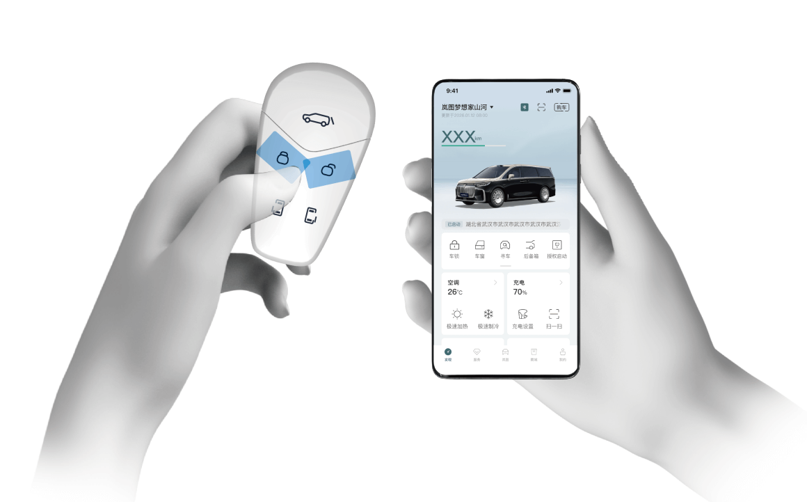 蓝牙钥匙可在岚图汽车 APP 岚图 > 管理中心 > 蓝牙设置界面,设置开启 / 关闭近车自动解锁和离车自动上锁功能。