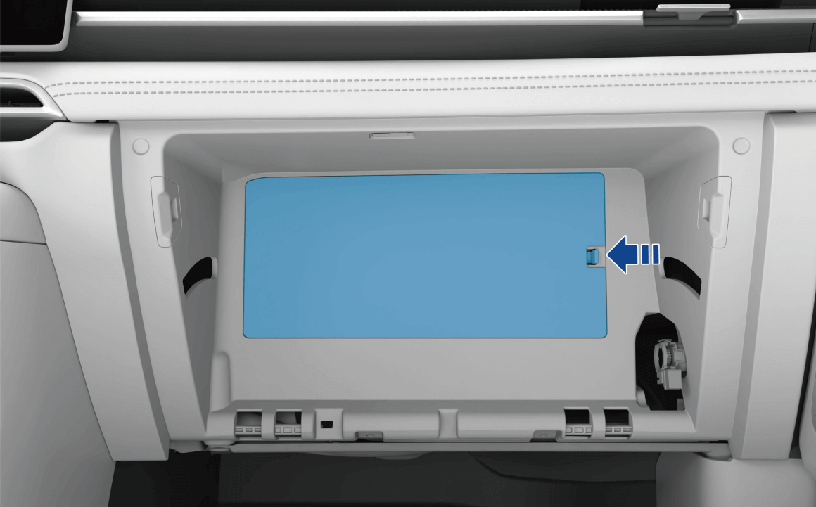 - 打开手套箱,用力按压手套箱两侧的限位卡,将手套箱开启到最低位;
