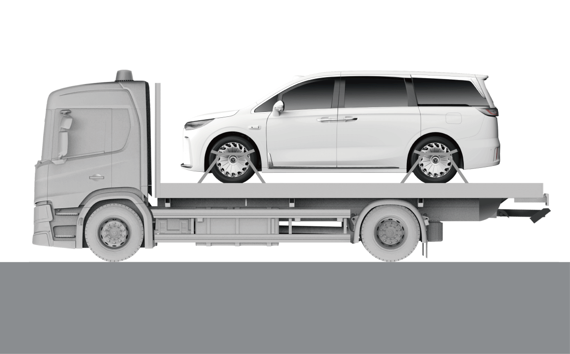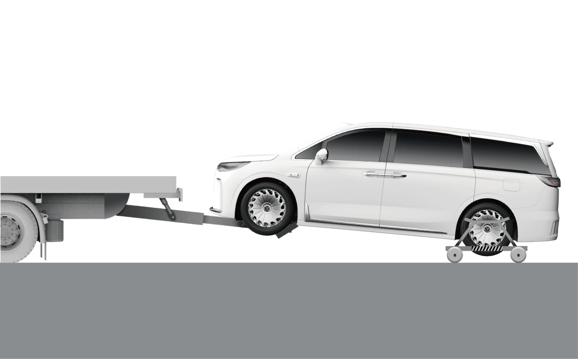 您可选择平台式拖车或车辆提起式拖车两种拖车方式,建议优先使用平台式拖车。如果车辆的车轮和车桥都处于良好状态,也可使用车轮提起式拖车。