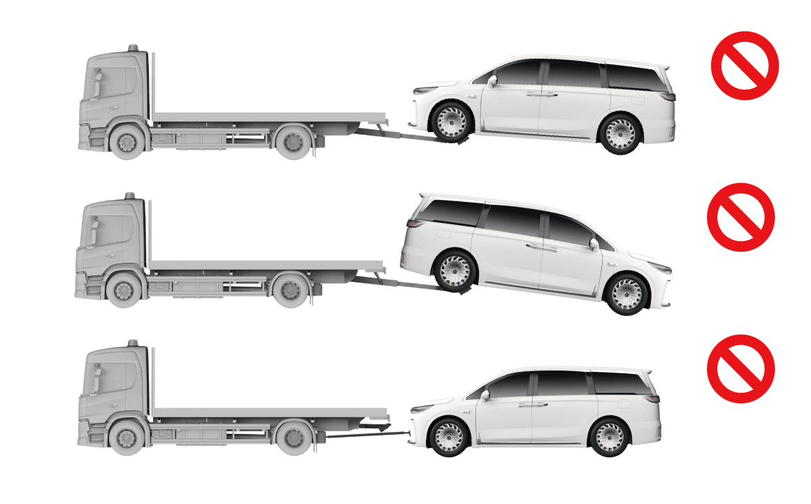 需使用四轮离地的拖车方式,禁止使用直接拖拽的方式。
