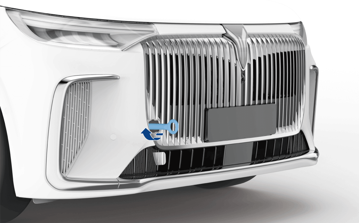 - 打开位于车辆右前大灯下方的牵引环装饰盖。