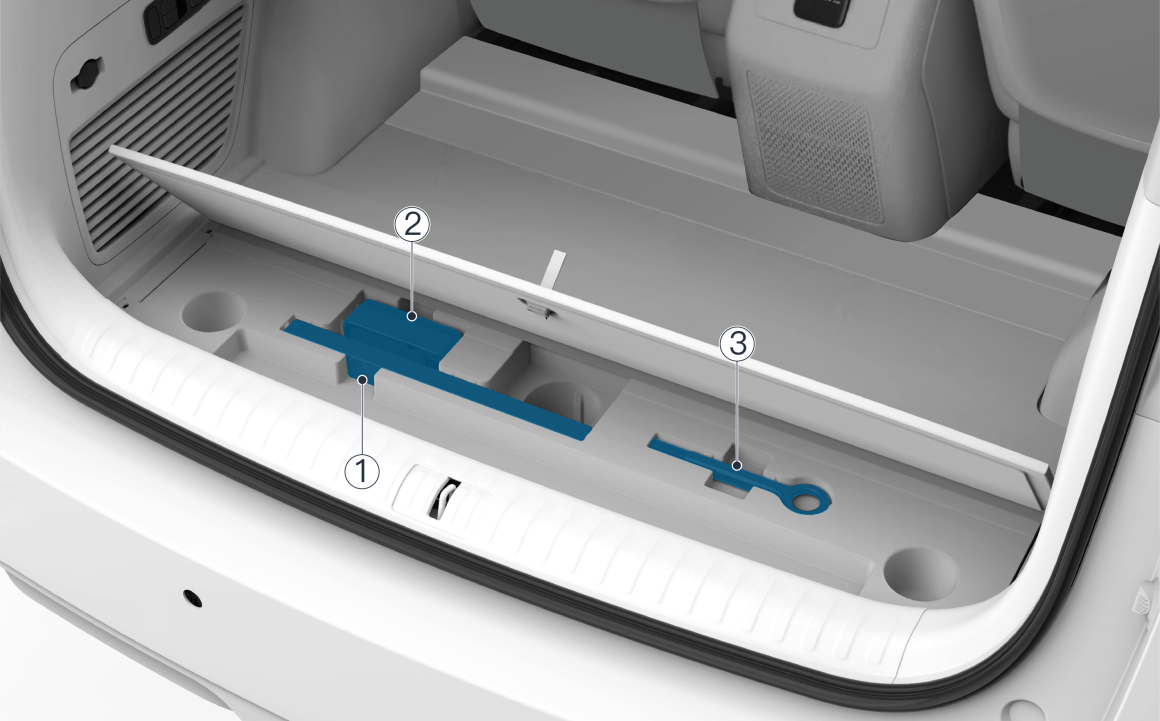 | ① 三角警示牌 | ③ 牵引钩 | ② 充气泵 |