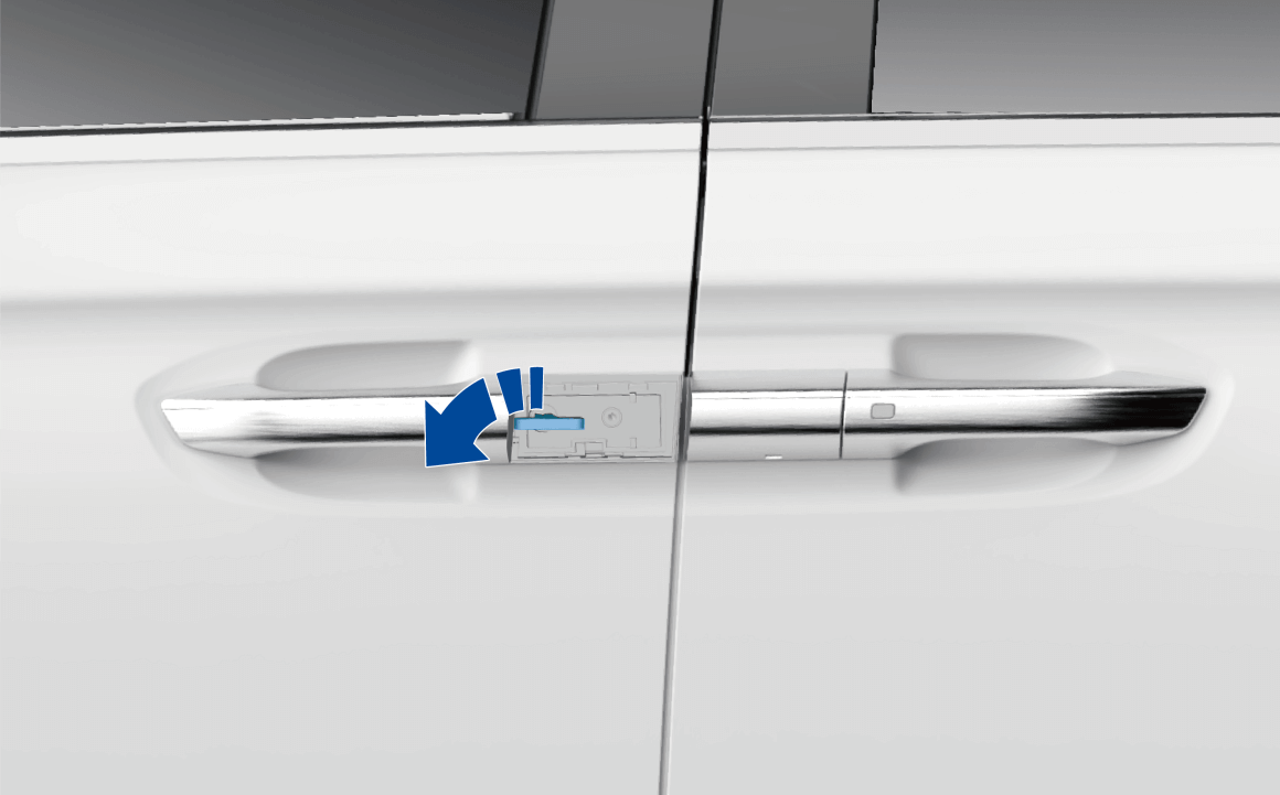 逆时针转动钥匙,主驾侧车门解锁。拔出机械钥匙,开启主驾车门,其它车门可通过应急机械拉手开启。