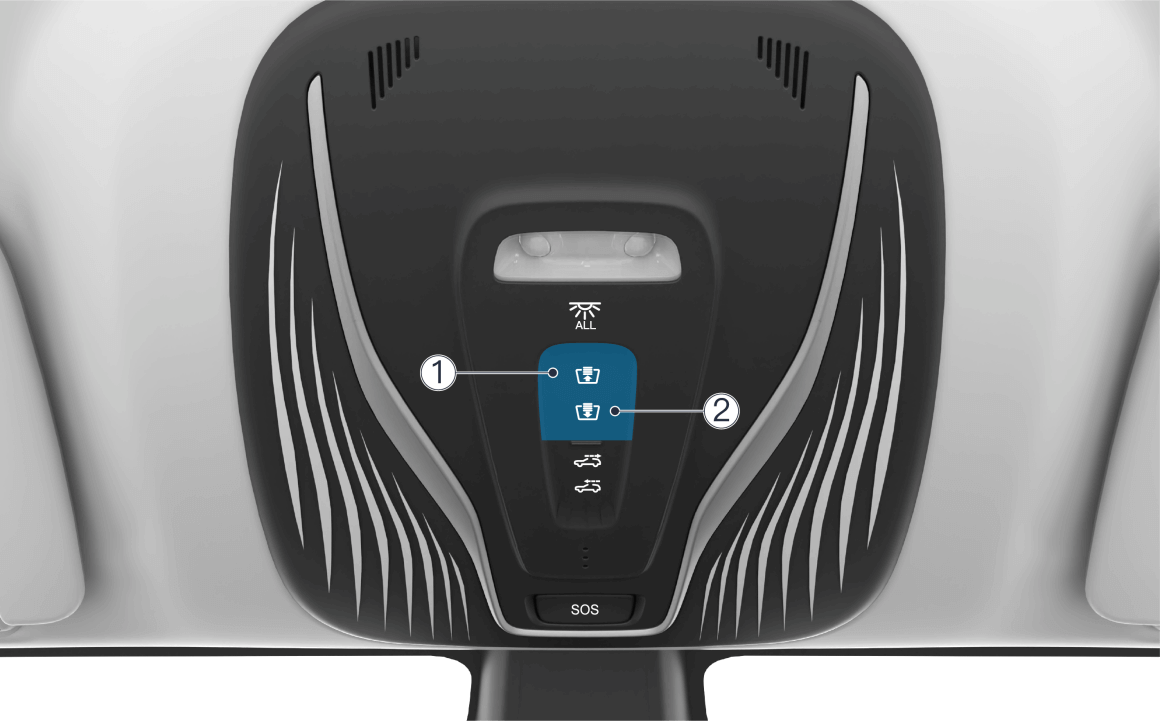 可在中控屏设置 > 车辆控制界面,点触遮阳帘按键,点触天窗遮阳帘,可控制后排天窗遮阳帘开启 / 关闭。
