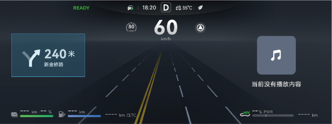 您可以通过组合仪表查看车辆的参数信息、导航信息、里程信息等。