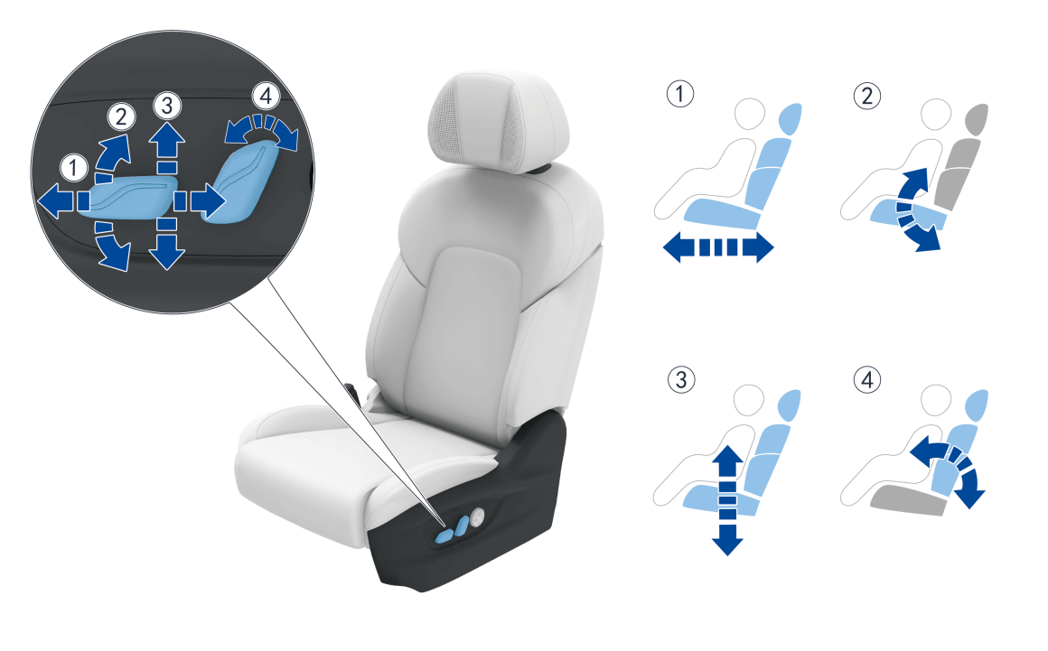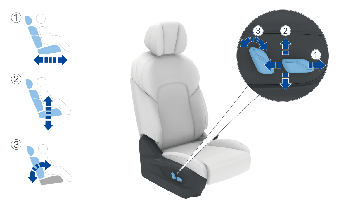 | ① 座椅前后调节 | ③ 座椅高度调节 |