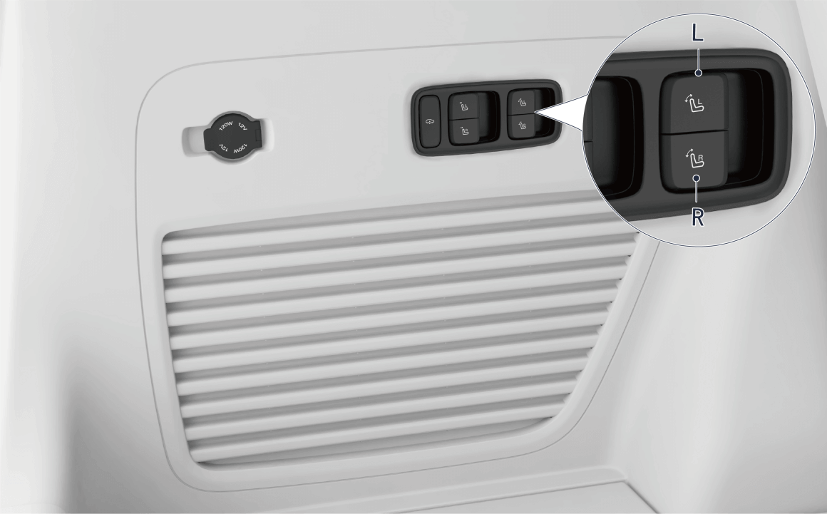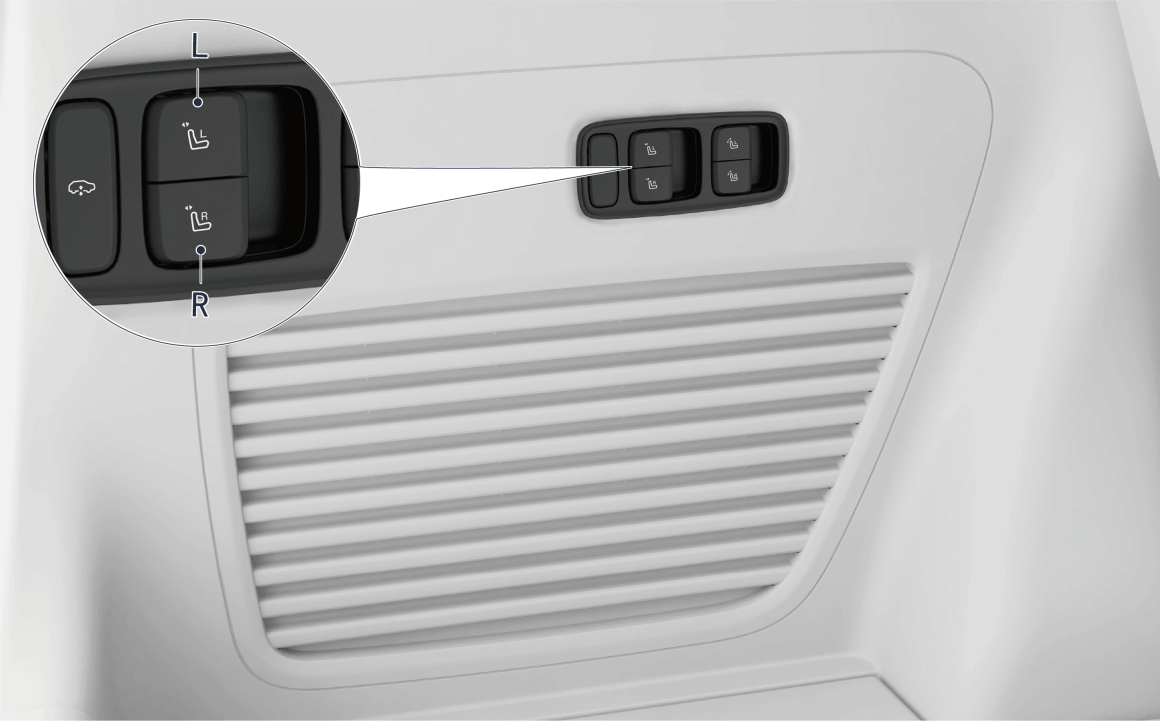 - 短按 / 提起后备箱左侧后排座椅前后调节按键(左侧为 L,右侧为 R),可调节后排对应侧座椅前后位置。