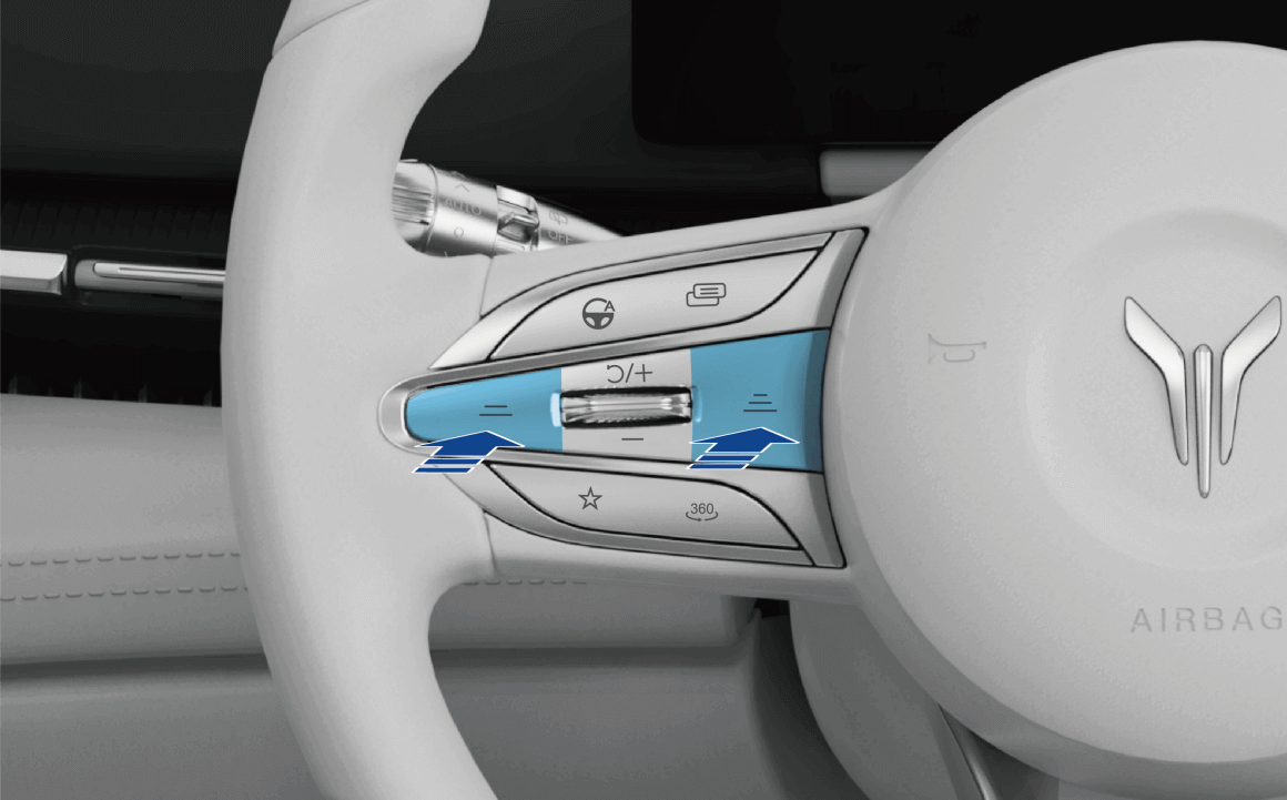 在车辆处于 D 挡的任意时刻,驾驶员可以通过以下方法调节跟车时距。调节后的跟车时距挡位会在组合仪表显示,并保存到驾驶员账号中,作为下次跟车巡航时的默认跟车时距。