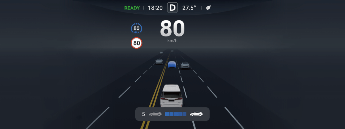 调节跟车时距时,组合仪表底部会显示目标跟车时距档位,该信息会在显示数秒后消失。
