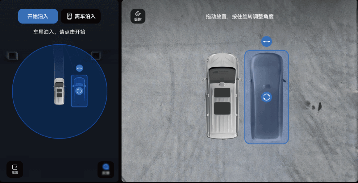 - 点触屏幕目标位置或拖拽车位框以调整位置,拖动车位框顶部的旋转图标以调整角度。