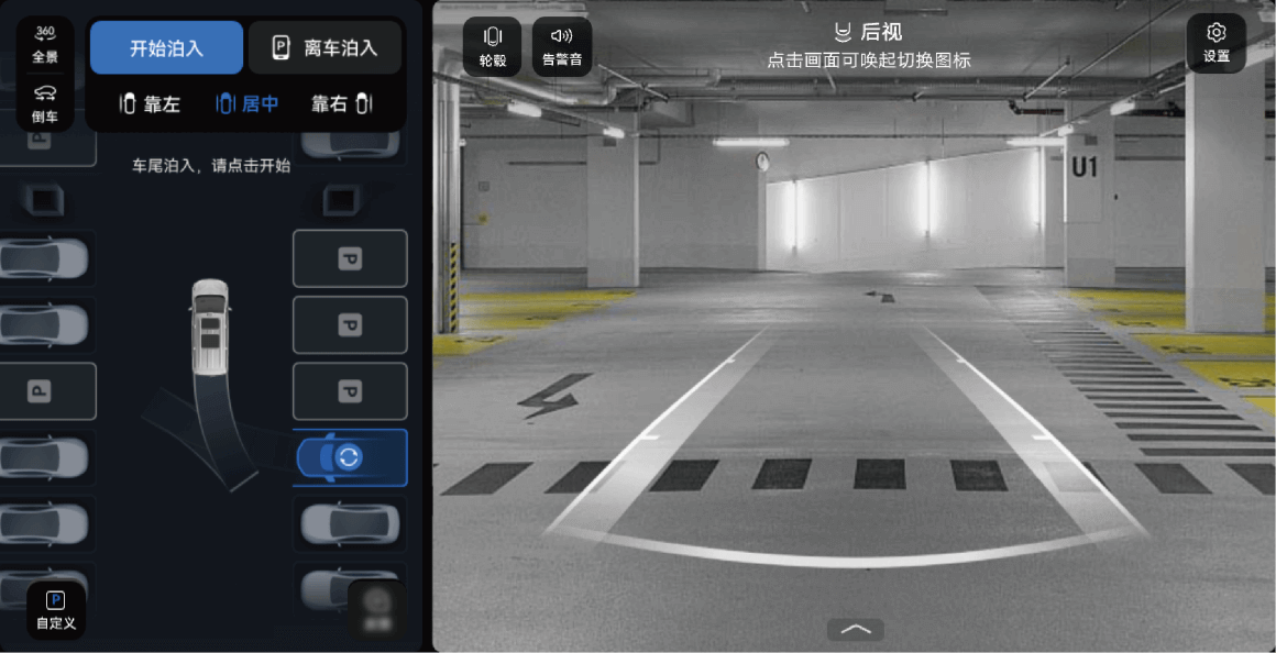在没有车位线的场景下,驾驶员也可选择“自定义车位”功能完成车位选择。