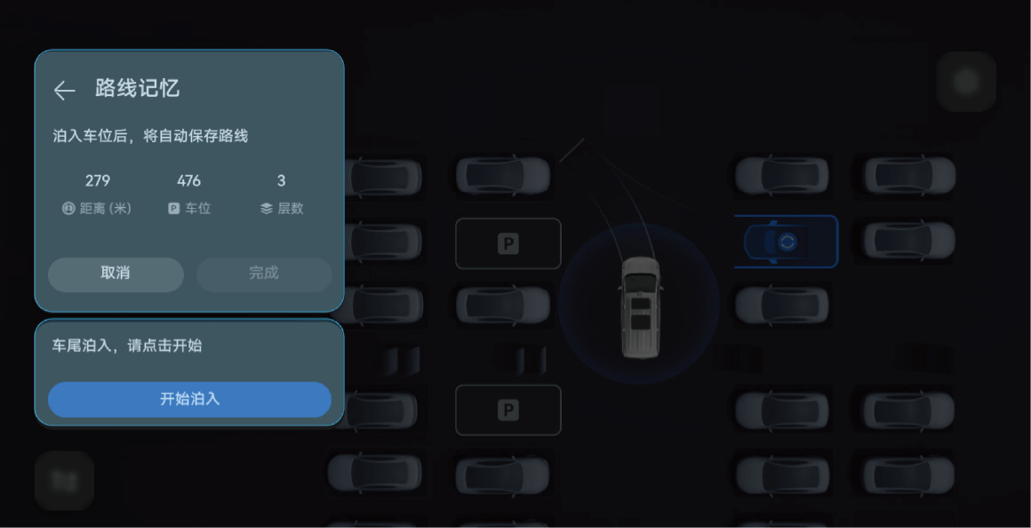 泊入完成后,系统将生成泊车路线并收藏当前车位。