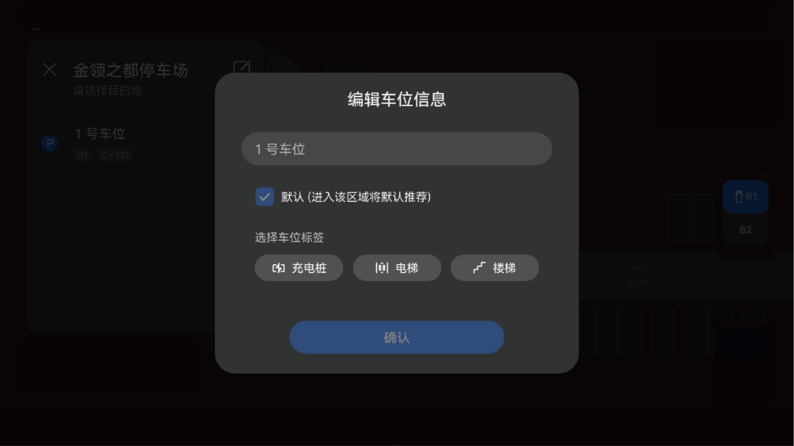 - (可选)点触“知道了”后,可编辑车位标识信息(如有充电桩、在电梯旁等位置参考信息) 。