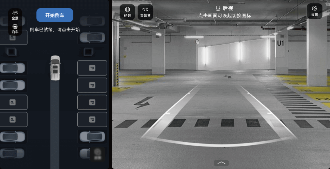 - 踩住制动踏板,点触“开始倒车”。