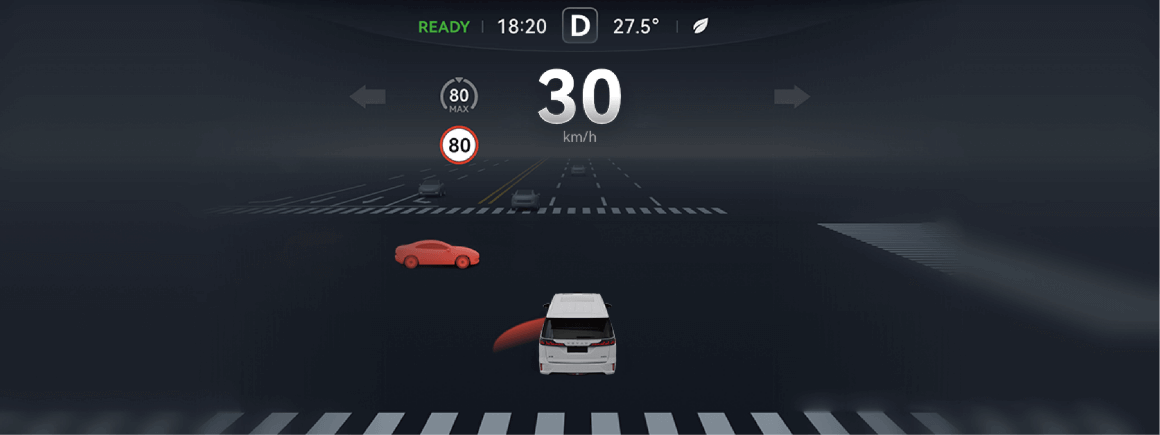 预警时,组合仪表上会通过黄色或红色元素向驾驶员提示风险,红色元素时的碰撞风险更高。