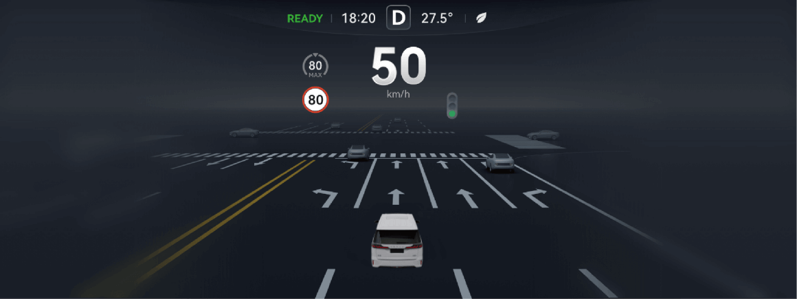 识别并实时 3D 显示交通信号灯信息,提醒驾驶员合理驾驶。本功能默认开启,驾驶员无需设置开关。