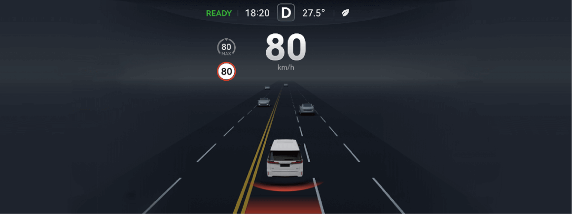 除通过组合仪表向自车驾驶员预警外,车辆还会同时打开危险报警灯,向后车驾驶员提示碰撞风险。