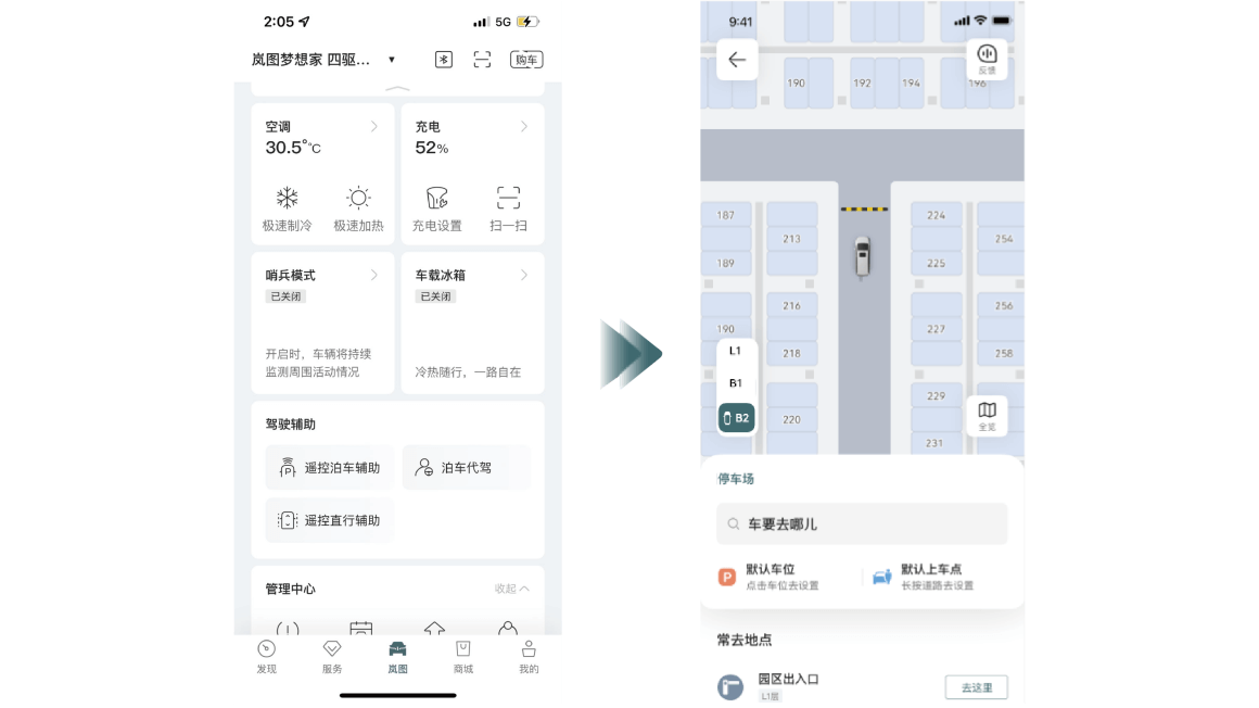 打开手机岚图汽车 APP 进入岚图 > 泊车代驾。