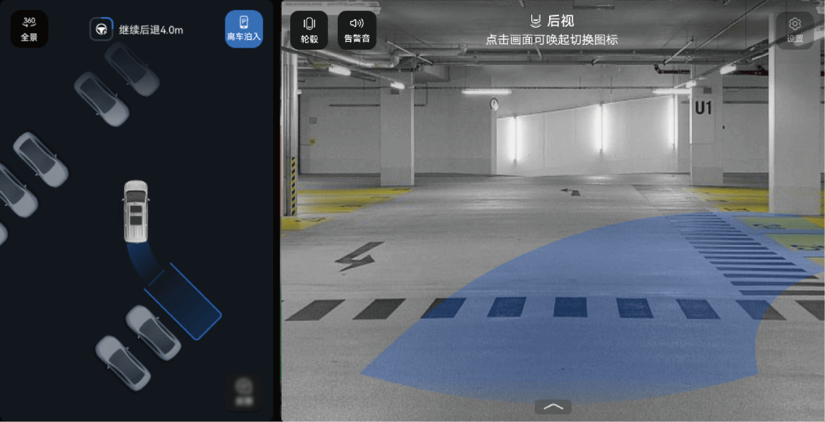 场景四:在暂停循迹倒车时,选择目标车位后,点触“离车泊入”按钮。