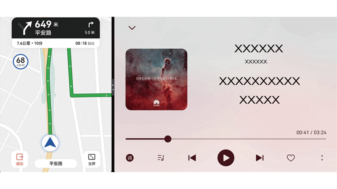 在导航过程中,使用车主指南应用时,无需退出导航,中控屏将自动分屏,同时显示导航和应用界面。