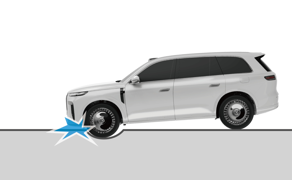 越过较深坑洼路面时,车头撞击地面。