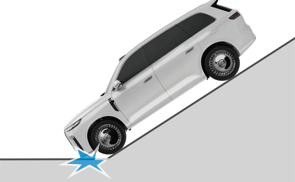 下陡坡时,车头碰撞到地面。