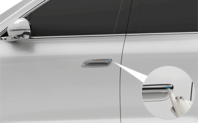 - 车辆解锁时,按下车门把手上按钮,可电动开启 / 关闭对应侧车门。