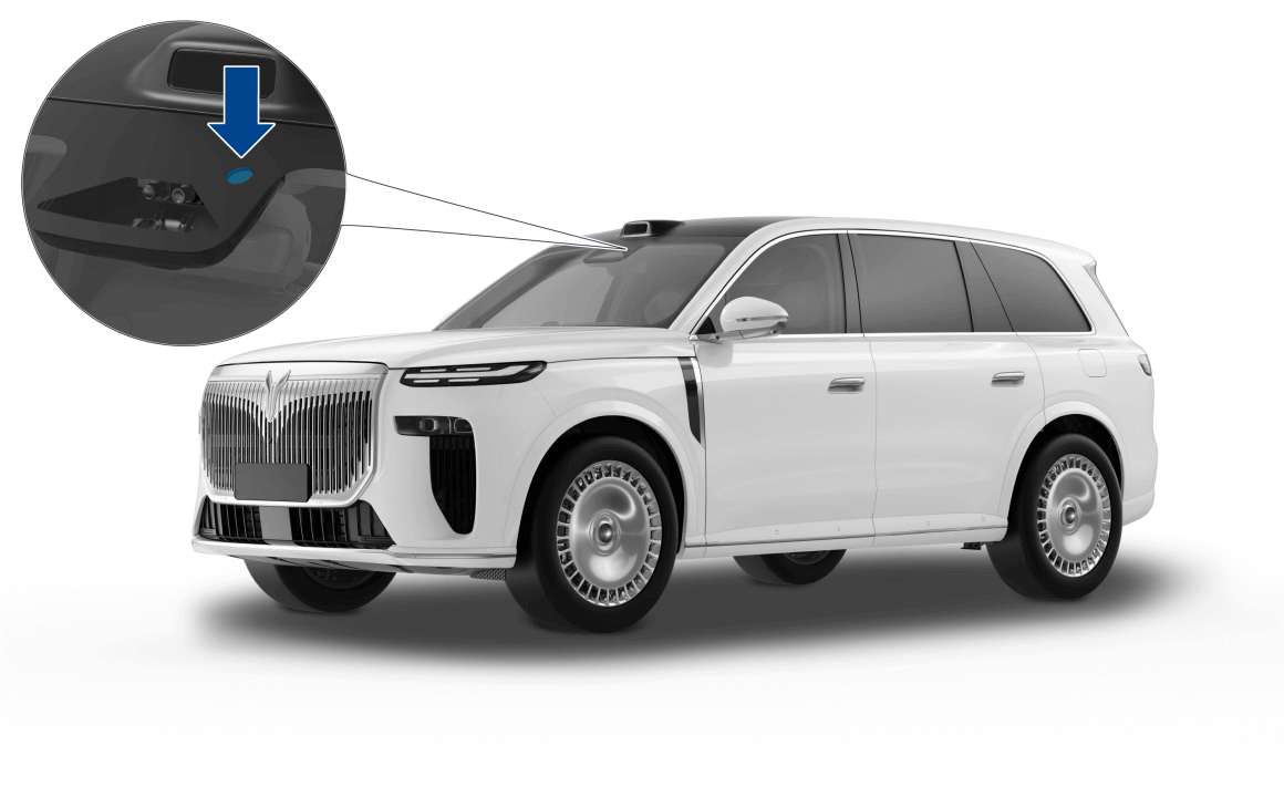 雨量光线传感器位置如上图箭头所示,车辆锁止后,当雨量光线传感器检测到雨水时,车窗将自动关闭。