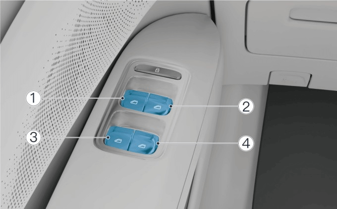 车辆上电后,主驾侧车门上的控制按键可控制四个车窗玻璃升降。