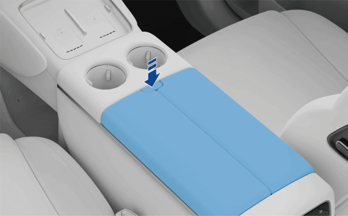 - 推回中央扶手箱上盖,听到 “咔嗒” 扣合声,可关闭中央扶手箱。