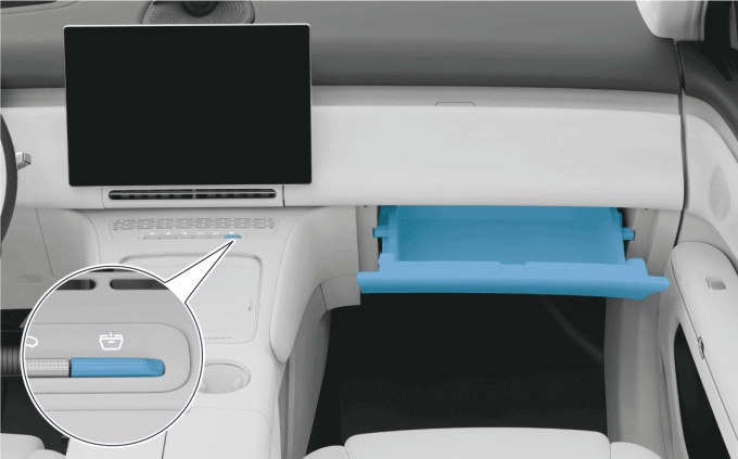 - 在中控屏进入“设置 > 车辆控制 ”,点击手套箱按键,手套箱开启。
