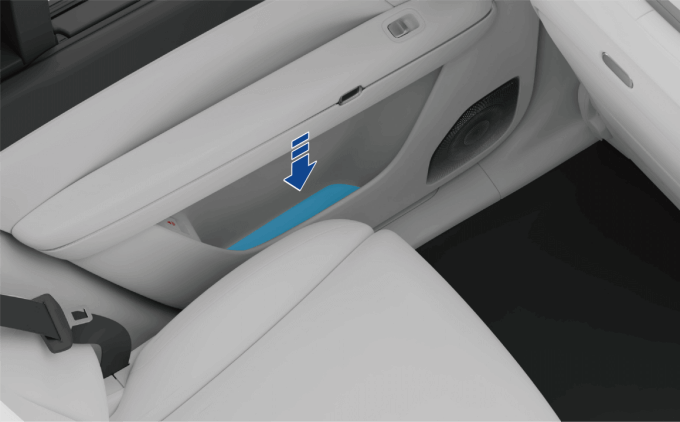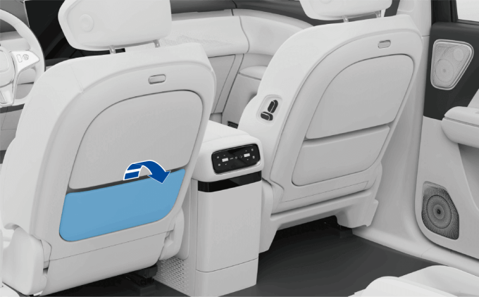 - 文件袋位于前排座椅后方(零重力座椅车型副驾座椅无文件袋配置)。