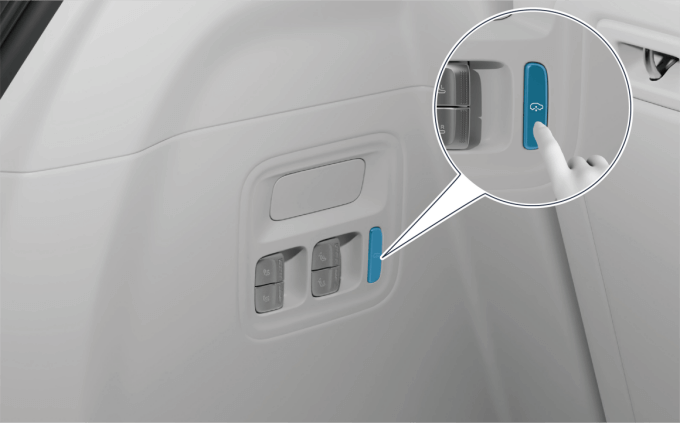 当您开启电动后备箱后,按下后备箱左侧的便捷载物开关,车辆后悬架开始下降同时按键指示灯闪烁,提示您悬架正在调整中,高度降至“最低”后指示灯常亮,此时您可以按需放置或取出物品。操作完成后再次按下便捷载物开关,车辆后悬架高度上升同时按键指示灯闪烁,恢复至预设高度指示灯熄灭。