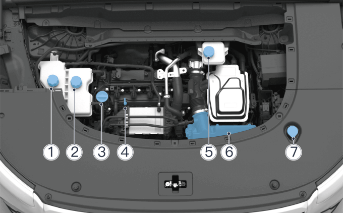 ⑦ 风窗玻璃洗涤液加注口盖