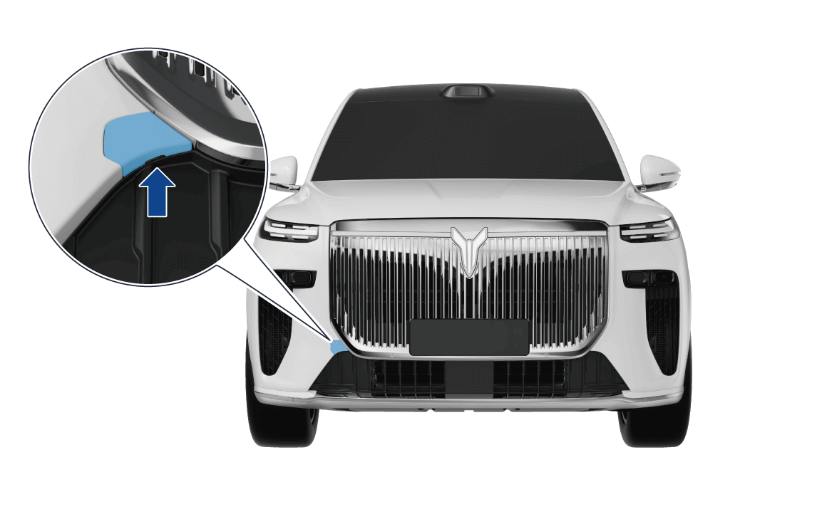 牵引环放置在车辆后备箱随车工具盒中,使用时请将牵引环安装在牵引孔内。