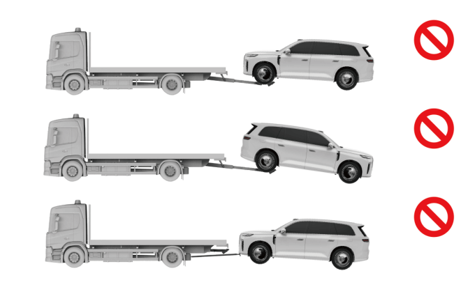 需使用四轮离地的拖车方式,禁止使用直接拖拽的方式。